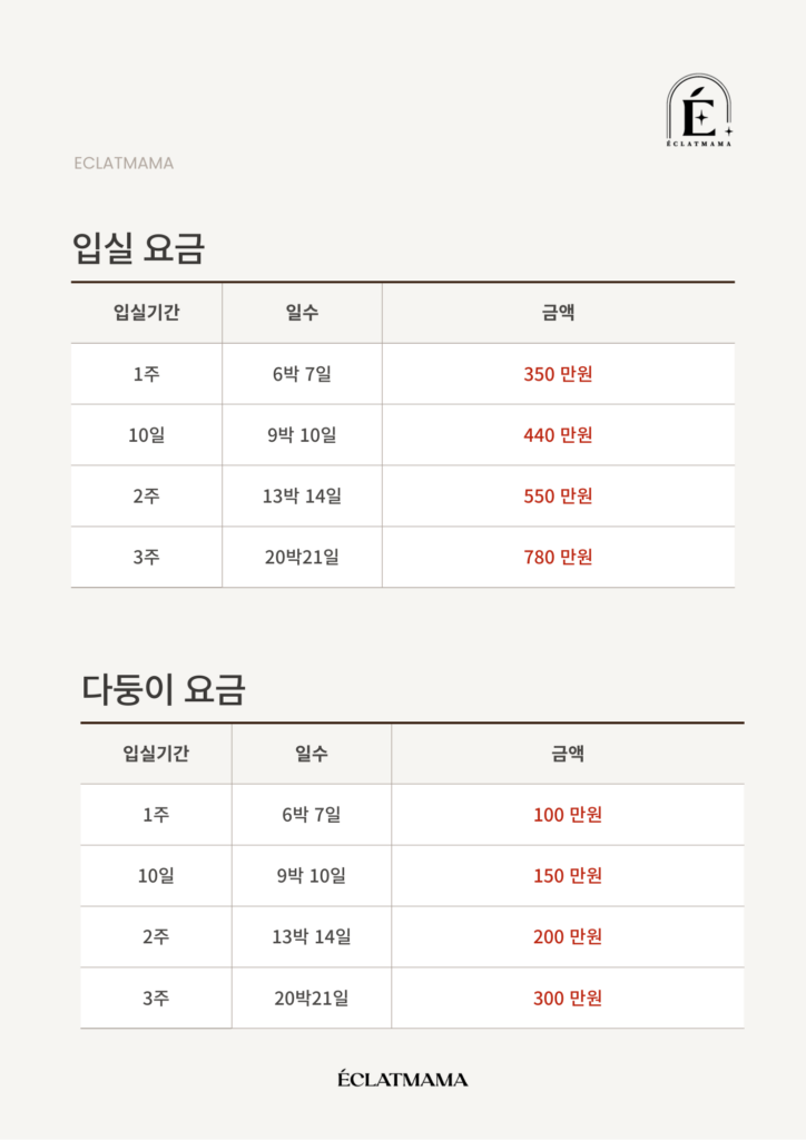 (3) 계약서에 기재된 총 이용금액은 산모와 신생아 각 인이 함께 입실한 요금을 원칙 으로 합니다.